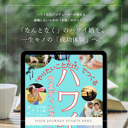 ハワイ在住の私だからお伝えできる旬でリアルなハワイ婚情報や裏話もこちらでご紹介していきます。