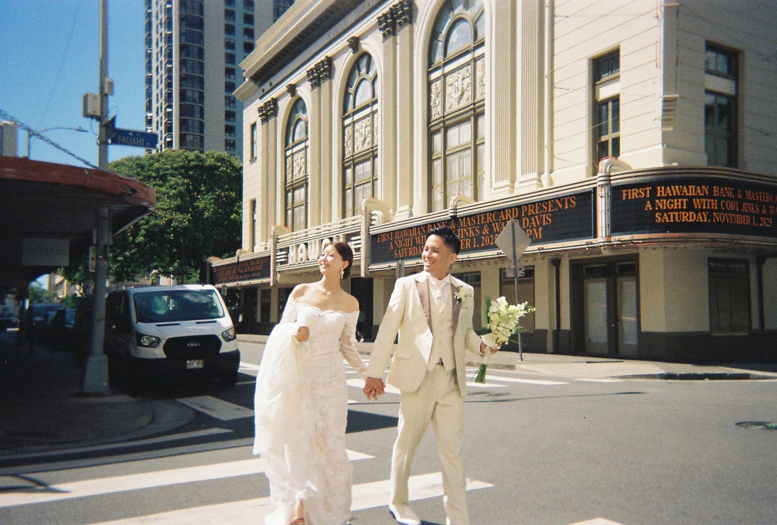 ハワイの名物マラサダ×ウェディングフォトが可愛すぎる♡ レナーズ前で叶えるローカル感たっぷりの1枚